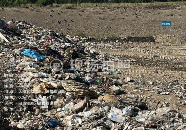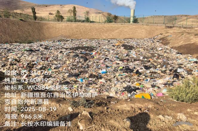 图2 2025年8月19日,督察组现场督察发现,新源县生活垃圾填埋场大量垃圾露天堆存,未及时压覆,现场气味刺鼻。