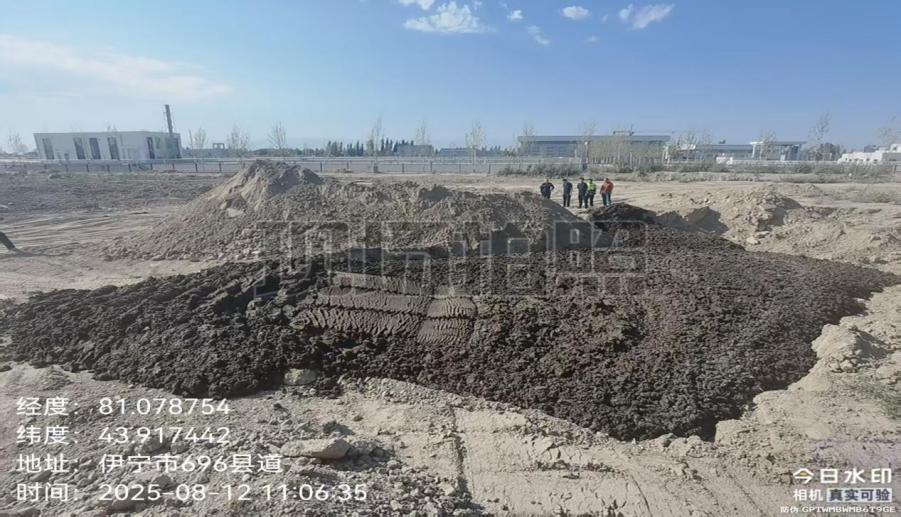 图5 2025年8月12日,督察组现场督察发现,伊宁市第三污水处理厂三期工程在北侧厂区裸地上堆放污泥。