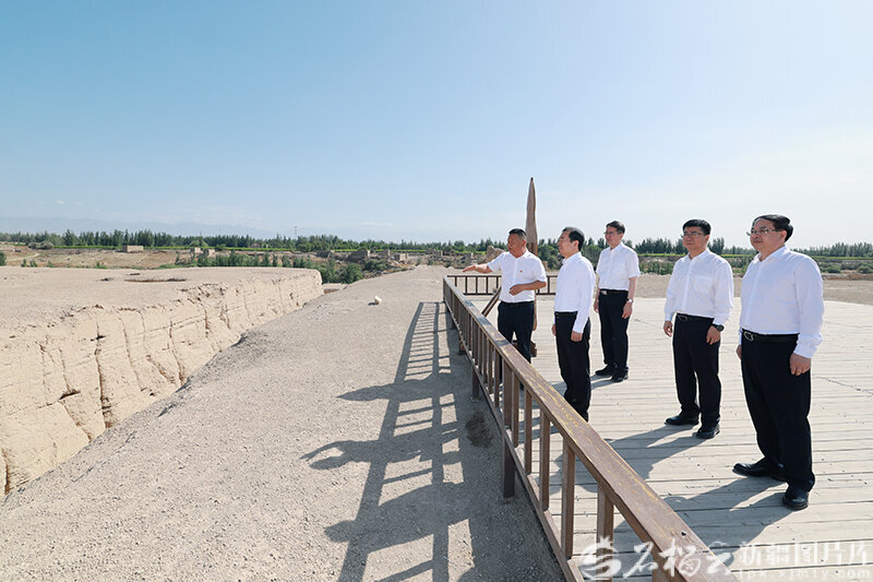 4月28日,自治区党委书记陈小江在吐鲁番市交河故城,实地调研遗址保护利用和文化旅游工作。石榴云/新疆日报记者 崔志坚摄