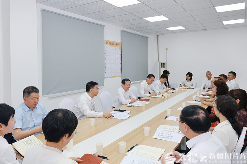 4月29日,自治区党委书记陈小江在吐鲁番市高昌区高昌路街道广汇社区接待信访群众,认真听取群众代表关于老旧小区改造提升有关诉求,现场研究推动解决问题。石榴云/新疆日报记者 崔志坚摄